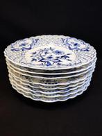 Acht stuks meissen porselein, ronde onderglazuur zwiebelmuster durchbruchteller met een diameter van 20,8 cm, daterend uit 1860–1934, in zeer goede staat met lichte beschadigingen aan één bord aan de