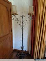 Très beau lampadaire original des années 1920, très beau socle en fer forgé orné de feuilles, et de grappes de raisin avec une grande plaque de verre, bol en pâte de verre, charles schneider, ferronne