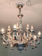 - Lustre - Porcelaine - Style CapodimonteLustre en porcelaine de style capodimonte, fabriqué en italie, circa 1950–1960, avec 16 abat-jours, diamètre 85 cm, hauteur 95 cm et profondeur 85 cm, en excellent état, en fonctionnement et envoyé en