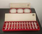 Twee prachtige sets van 12 facet geslepen messenleggers en 12 onderzetters in originele doos. De sets zijn gemaakt door de kristalunie maastricht. De kristalunie maastricht werd in 1959 overgenomen en