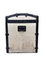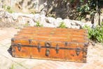 1 déc. 25CatawikiToute la Belgique - Coffre de rangement - Bois, Métal, PapierMalle ancienne en bois brun avec renforts en fer forgé et couvercle bombé, période 1900–1910, dimensions 92 × 47 × 60 cm, en bon état d’usage.