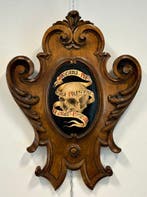Hiernunc75Luxembourg, LU - Barok Reliekhouder - Hout - 1750-1800 - Memento Mori - 52 cmZeldzaam houten reliquiarium, fijn gesneden en verguld, daterend uit de barokperiode, 18e eeuw.in het interieur bevindt zich een olieverfschilderij op paneel dat een memento mori-thema uit de 20e eeuw