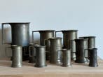 9 janv. 26foggiatoGerpinnes - Mesure en étain - 7 pots7 mesures en étain, en bon état. Du plus grand au plus petit, h 21 cm, h 17 cm, h 13 cm, h 10 cm, h 8 cm, h 6 cm et h 5 cm.Enlèvement ou Envoi