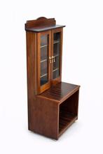 Meuble à partitions vtrine étroite en bois au style edwardien, datant de 1930–1940, bois et verre, hauteur 110 cm, largeur 45 cm, profondeur 40 cm, avec étagères intérieures, niche inférieure ouverte, poignées en laiton, origine france, en bon état a...