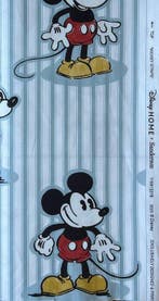 Avant-hierPub au topCatawikiToute la Belgique - New set of three cushions made with Disney Home x SandersonEnsemble de trois coussins fabriqués avec le tissu disney home x sanderson mickey stripe sea salt en 100 % coton, avec verso coton et lin bleu, dimensions 56 × 36 cm pour un coussin et 36 × 36 cm pour