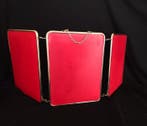 - Miroir - Métal, Verre - Miroir de barbier triptyque avecMiroir de barbier triptyque avec chainette vintage, en métal et verre, origine france, période estimée 1940–1950, rouge, poids 840 g, chacun des trois miroirs mesurant environ 24 × 18 cm, bel état ave