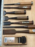 - Ensemble de gouges de menuisier japonais (7 pièces) avecEnsemble de gouges japonaises – sept gouges plus une petite plane (yc91), outils de menuiserie vintage du japon datant des années 1990, en bon état d’usage avec quelques signes d’usure.