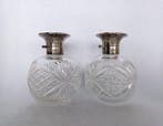 3 janv. 22Didier et MarleenAnderlecht - Pair of scent - Bouteille de parfum - Argent 925Une paire de flacons à parfum en argent sterling du début du xxe siècle, chacun de 11,5 cm de haut et 9 cm de diamètre, pesant ensemble 597 g, avec bouchons en verre et corps en cristal taillé à la ma