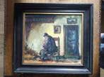 - Henri Joseph Pauwels (1903-1983) - In de boerderijPeinture à l'huile de henri joseph pauwels (belgique), intitulée « in de boerderij », scène intérieure originale des années 1960–1970 dans un style classique, 48 × 52 cm, signé à la main, vendue a