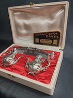 - danex - Zout- en pepervaatjes (3) - theepot - VerzilverdZoutstel, pepermolen en schaal van verzilverd metaal die theepotten van de sierambacht danex voorstellen, opgericht in 1931. Koninklijke parure, model en presentatie gedeponeerd. Zeer mooi model.zal u