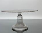 Coupelle à gâteau en verre sur pied de scailemont, belgique, datant du milieu du xxe siècle, en verre pressé avec des influences art déco et des teintes pastel chaudes; diamètre 31 cm, hauteur 10 cm, largeur 32 cm, état: als nieuw - ongebruikt.