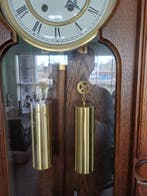 29 mars 26CatawikiToute la Belgique - Horloge murale - Badische Uhrenfabrik (Baduf) - Bois,Horloge mural allemand antique de badische uhrenfabrik (baduf) daté 1920–1930, boîtier en chêne massif avec mouvement mécanique en laiton, sonnerie au gong sur l’heure et la demi-heure, dimensions 70