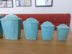 20 mars 19stockiGlain & Partie Ans - Boch Servies: Vintage Keukenpotten Set 12 delig !Prachtige vintage set van boch servies, bestaande uit 12 keukenpotten. 6 Grote en 6 kleine. De set omvat grotere potten voor sucre, café, vermicelle, chicorée, riz en farine, en kleinere potten voor mEnlèvement ou Envoi