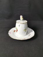 17 mars 26AnthonyLRonse - Meissen - Frutti e fiori - Barattolo con cucchiaio - AltezzaPots à épices en porcelaine avec cuillère, motif fruits et fleurs, hauteur 11 cm, diamètre 15 cm, origine allemagne, période 1850–1900, en bon état d’occasion avec de légères traces d’âge et un petit