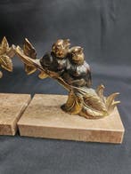 - Serre-livres - oiseaux - Marbre, RégulePaire de serre-livres représentant des oiseaux sur socle en marbre avec patine bronze, datant du début des années 1920, originaire de france, modèle oiseaux, 15 cm de largeur, 8 cm de profondeur, 13 c