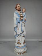 Aujourd'huiAlexRttUccle - sculptuur, A large saint Josef and child - 42.5 cm - BiscuitSierlijk religieus beeld van heilige jozef met het kind jezus, uitgevoerd in verfijnd biscuit porselein en met de hand polychroom beschilderd.het beeld toont jozef met het kind jezus op de arm. Jezus