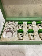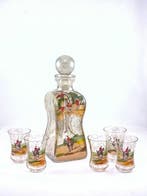 - Service à liqueur (6) - Verre - Coffret de liqueurs vintageEnsemble de liqueur vintage italien des années 1950, comprenant une carafe avec bouchon d'origine et cinq verres à liqueur assortis, tous en verre à effet craquelé et décorations émaillées à la ma