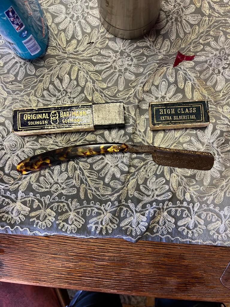 29 janv. 26PietVertongenLeuven - Verschillende open scheermessen1. Saphir solingen 7/8" saphir superior quality, incl doosje verkocht 2. W. Picard garanti 7/8" eind jaren 1800. Mes is beschadigd (zie foto's) 7€ 3. Carl schaaf solingen 5/8"Enlèvement ou Envoi