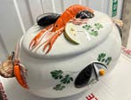 26 mars 26YLPGlain & Partie Ans - Terrine de soupe française vintageTerrine de soupe (soupiere) en faïence française vintage de style vieux rouen, avec assiette et couvercle. Parfait état.Enlèvement ou Envoi