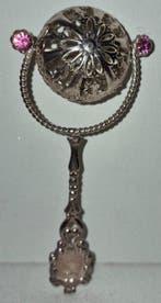 - Martin Gold Silver - Sucrier (2) - Argent - Set avec hochetEnsemble de deux pièces antiques italiennes en très bon état vintage par martin gold silver, comprenant une clochette en argent sterling ornée de cristaux roses et une poignée de style baroque, enviro