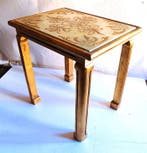 - “Italian Florentine giltwood side table, ca. 1950s, pan deItaliaanse florentijnse geciseleerde houten bijzettafel, ca. 1950, Met bladgoud, in rococo-stijl, afmetingen 45 × 45 × 35 cm, oorsprong florence/venezia, in goede gebruikte staat met kleine ouderdomss