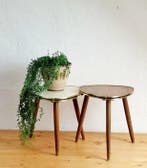 - Table dappoint - Bois, Formica, Laiton - Deux petitesDeux guéridons de plante vintage avec un pot assorti, fabriqués en allemagne et datés des années 1950–1960, en bois, formica et laiton, en bon état d’usage avec de petites traces de vieillissement et