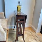 - Table dappoint - AcajouPetit tab le anglais à rabat en acajou sombre, royaumeuni, période 1930–1940, en bon état avec quelques signes d’usure, dimensions ouvertes 83 × 69 cm et fermées 18 × 69 cm, solide et stable.