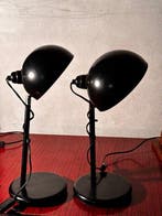 Aujourd'huiPub au topCatawikiToute la Belgique - Lampe de table (2) - MétalPaire de lampes de table en métal noir au cadre minimaliste et abat-jours semisphériques inclinables, intérieur blanc pour refléter fortement la lumière, interrupteur rouge sur le câble, tige fine et