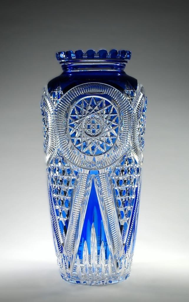 - Val Saint Lambert - Vaas Viennois - VSL - Val St LambertVal saint lambert - vaas viennois - ontwerp hf406 - hubert fouarge - 1900/1910. Sublieme vaas viennois in ongekleurd kristal, gedoubleerd met een blauwe kleur en geslepen naar een complex en laborieusEnlèvement ou Envoi