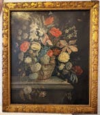 4 avr. 26Baksteen44Denderleeuw - French school (XVIII) - Flower vase on an entablature with aVase de fleurs sur un entablement avec un oiseau, huile sur toile du xviiie siècle de l’école française, origine france, avec cadre.