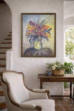 29 mars 26MrIstaJette - École européenne (XX) - Vase aux fleurs coloréesOlie op doekgesigneerd (handtekening moeilijk leesbaar)afmetingen inclusief lijst: 70 × 87 cmbelangrijk decoratief formaat dat de schilderachtige aanwezigheid van het werk sterk benadrukt.deze interes