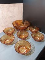 - Luminarc - Plat (7) - Comète - Verre - Plat à fruitsPlat à fruits en verre ambré, modèle comète de luminarc, france, datant environ 1950–1960, ensemble de 7 pièces: plat de 23 cm de diamètre et 9,5 cm de haut; ramequins de 12,5 cm de diamètre et 5,5 cm