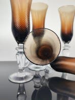 Aujourd'huiyblineaVilvoorde - Bécher (6) - Verre de MuranoEnsemble de six flûtes en verre de murano faites à la main, aux tiges sculptées et couleurs vives, hauteur 13,5 cm et diamètre 6 cm, datant de 1970–1980 et en bon état avec de légères traces d’usure.