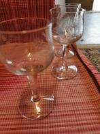 11 déc. 25CHANTVANGooik - 5 verres gravés à Porto5 verres anciens, sur pieds hauts, gravés à l'acide (guirlandes) taille correspondant au porto et autres apéritifs. Bon état, h 13cm, diamètre 5cm a retirer au magasin ou à expédier via bpost. Ew1Enlèvement ou Envoi