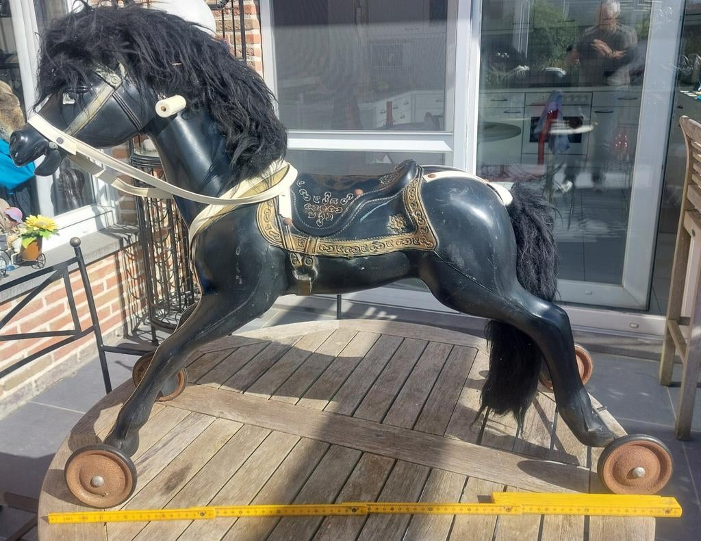8 janv. 24De mamaRanst - Très vieux cheval sur rouesTrès vieux cheval à roulettes, la hauteur est de 90 cm, et la longueur est de 80 cm, et 30 cm de largeur, le cheval a plus de 100 ansEnlèvement ou Envoi