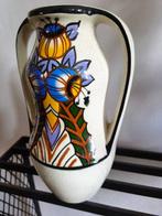 - Wasmuel - Vaas - Aardewerk - Art DecoEen faïence vaas met dubbele oor wasmuel, belgië; art deco stijl met gestileerde bloemdecor op craquelé écru glazuur, circa 1930–1940; hoogte 34 cm, breedte 19 cm, diepte 32,5 cm, diameter 9,5 cm; in
