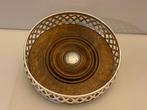 27 mars 26WatsonBalenKader (pastiglia) - jaren 70/80EnlèvementBalen27 mars 26 - Laurence . R . Watson - Flessenonderzetter - SterlingEen sterling zilver 925 champagne- of wijnfles onderzetter met een gedraaide houten basis en geperforeerde galerijvorm, een lege cartouche, groene baizebekleding, volledig gehamerde londen 1996 door l