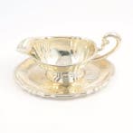 Avant-hiermietmangelschotsKessel-Lo - Otto Wolter - Sausboot - Sauskom - .925 zilverOmschrijving: fraaie juskom, ofwel sausboot, uitgevoerd met handgreep en een vast, ovalen dienblad en gedecoreerd met gelobde vormen.herkomst: schwäbisch gmündzilversmid: otto wolterjaar: ca. 1965Keur