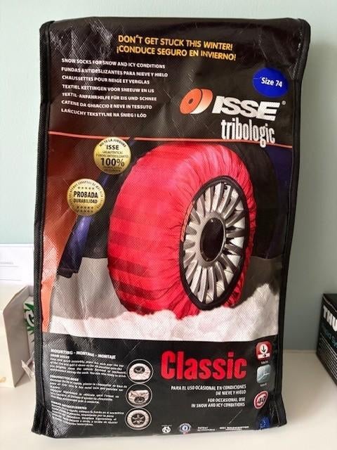 - chaussettes à neigeChaussette isse classic taille 74, convient à de nombreuses tailles de pneus. Jamais utilisé, vendu parce que j'ai changé de voiture et ne convient pas au nouveaux pneus.Enlèvement ou Envoi