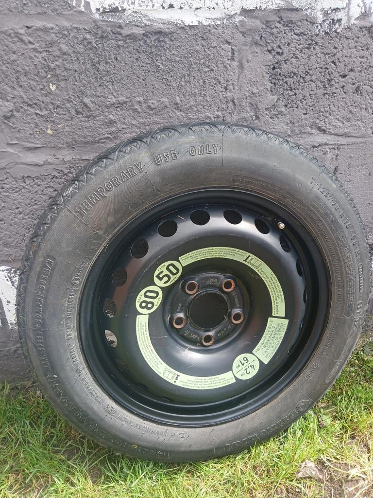 15 nov. 24AJM CARQuevaucamps - Roue de secours 125 70 16p 5par112 Vw Audi Seat SkodaRoue de secours types galette entraxe 5par112 dimension 125 70 16 pouces vendu avec crique de levage origine va sur de nombreux véhicule avec entraxe 5par112 golf caddy touran passât audi a3 seat skodEnlèvement ou Envoi