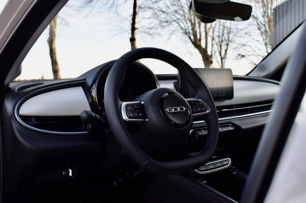 Mooi uitgeruste fiat 600 hybrid met 136 pk met 5000kl daginschrijving 6/2025 dode hoek sensoren navigatie apple carplay en android auto draadloos laden adaptieve cruise control sfeerverlichting alu ve