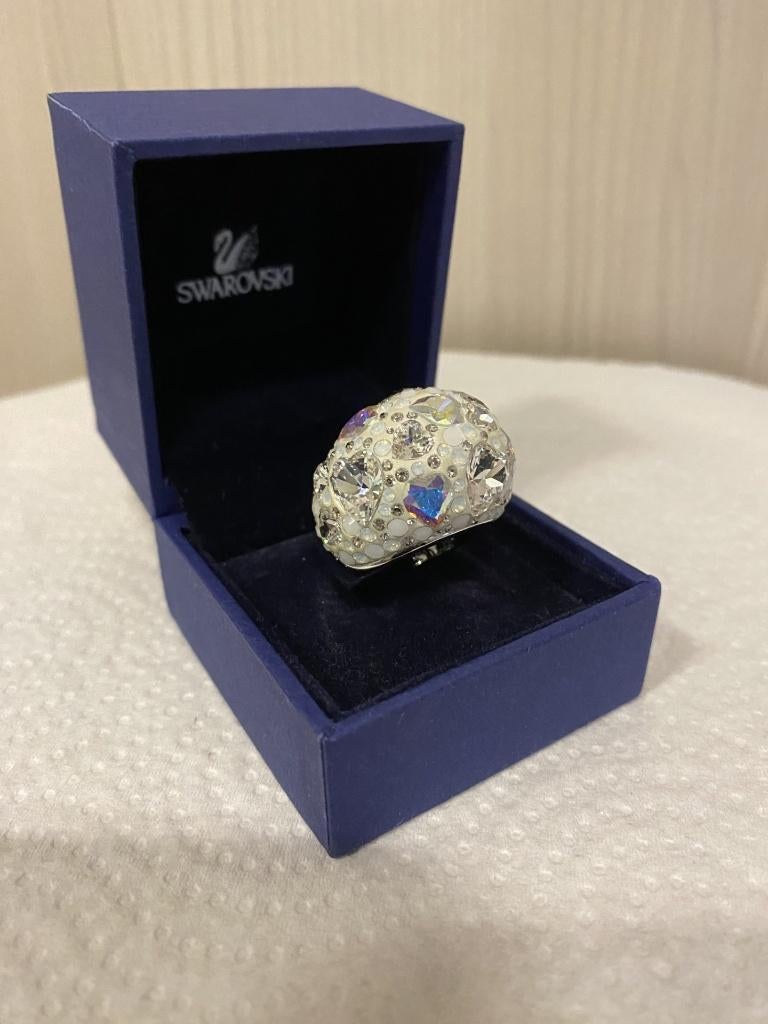 - Bague cocktail Swarovski blancheUne élégante bague à cocktail ornée de cristaux incolores. La plupart des cristaux sont en forme de cœur. La bague intérieure est argentée. La bague est livrée dans sa boîte d'origine. Size 55 besComme neuf Enlèvement ou Envoi