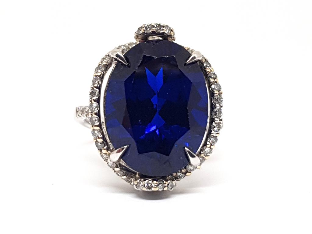 30 mars 26JordyRiemst - Diamant Saffier Ring 5.70ct.18k geel-witgoud gewicht: 7.09 Gram diamanten: 0.70Ct. Kleur: g helderheid: vs synthetische saffier: 5.00Ct. Ringmaat: gratis verstelbaar gratis levering al onze sieraden worden geleverd met certificaNeuf Enlèvement ou Envoi