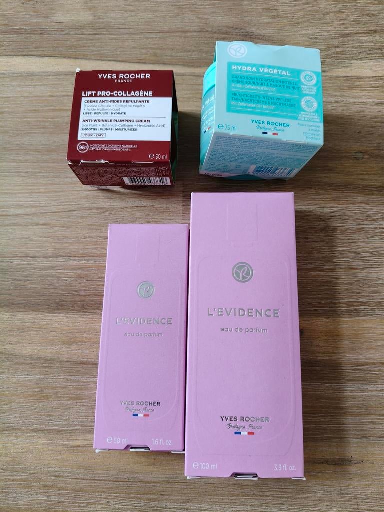 - Produits Yves rocher deux parfums et deux crèmeJe vends deux parfums yves rocher évidence un 50 ml et 100 ml et deux crème pour le visage tout est neuf jamais utilisé faire offres realiste