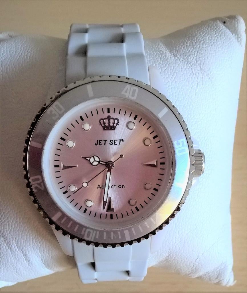 - Te koop: Leuk uurwerk van "Jet Set" met grote wijzerplaat.Te koop: mooi groot uurwerk "jet set". Werkt perfect. Grote (4cm) wijzerplaat met lichtgevende stippen(voor de uren) en fluo wijzers voor de uren. Met minutenwijzer. Rubberen licht grijze baUtilisé Enlèvement