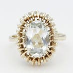 - Bague - 14 carats Or jaune Aigue-marineBague vintage en or jaune 14 carats avec une eau-rivière ovale facettée d’environ 2,30 ct, monture chaton ouverte avec travail-d’orfèvre, taille de doigt eu 55 (it 15, us 7¼), poids total 4,57 g, poin