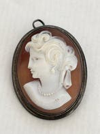 - Sans prix de réserve - Camée Argent, ShellBroche/pendant en argent massif avec camée en coquillage naturel représentant un portrait féminin au centre, entouré d’un entourage en fil torsadé, dimensions 3,7 × 2,7 cm, poids total 7 g, état très