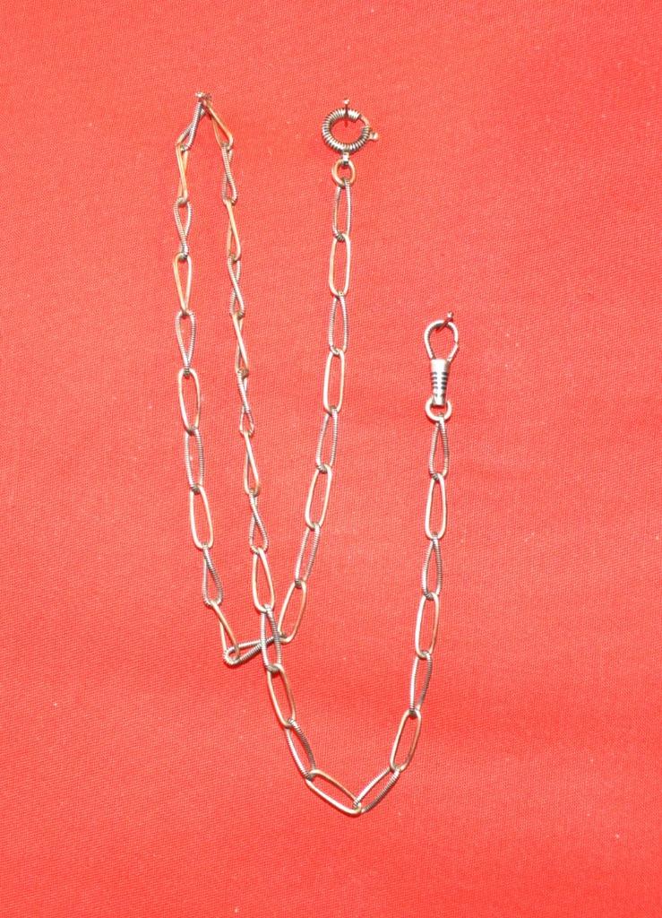 24 sept. 25ClaudeOgy - chaine pour montre gousset metal blancChaine pour montre gousse avec grosse maille en metal blanc anneau ouvrable d'un coté et mousquetona l'autre extémité longueur 29 cm bon état frais d'envoi en fonction du choix ref 281Enlèvement ou Envoi