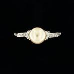 - Giorgio Visconti - Ring - 18 karaat Witgoud - 0.20ct. tw.Visconti ring in 18k wit goud (750/1000) met witte japanse parel en natuurlijke diamanten totaal 0,20 ct; maat eu 53, nieuw, geleverd met anonieme verpakking. Anello perla, marchio visconti, in oro 18
