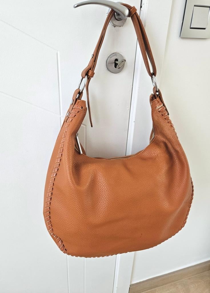 - Sac à main cognacSac à main en bon état, quelques traces d'usûre marque : giuliano dimensions : 40 x 30 cm couleur : cognac plusieurs poches intérieures à tiretteUtilisé Enlèvement ou Envoi